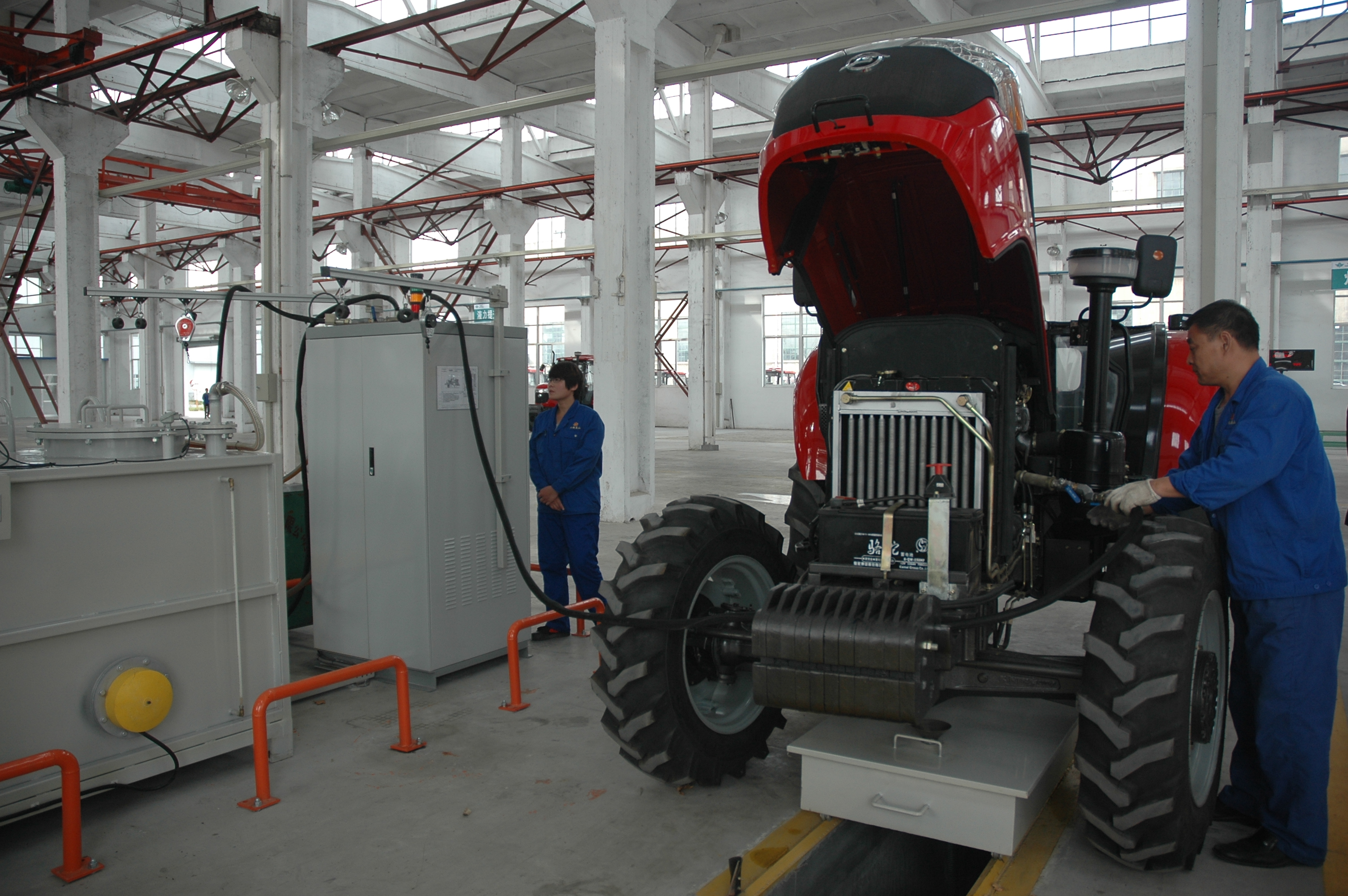 拖拉機調(diào)試車間一角